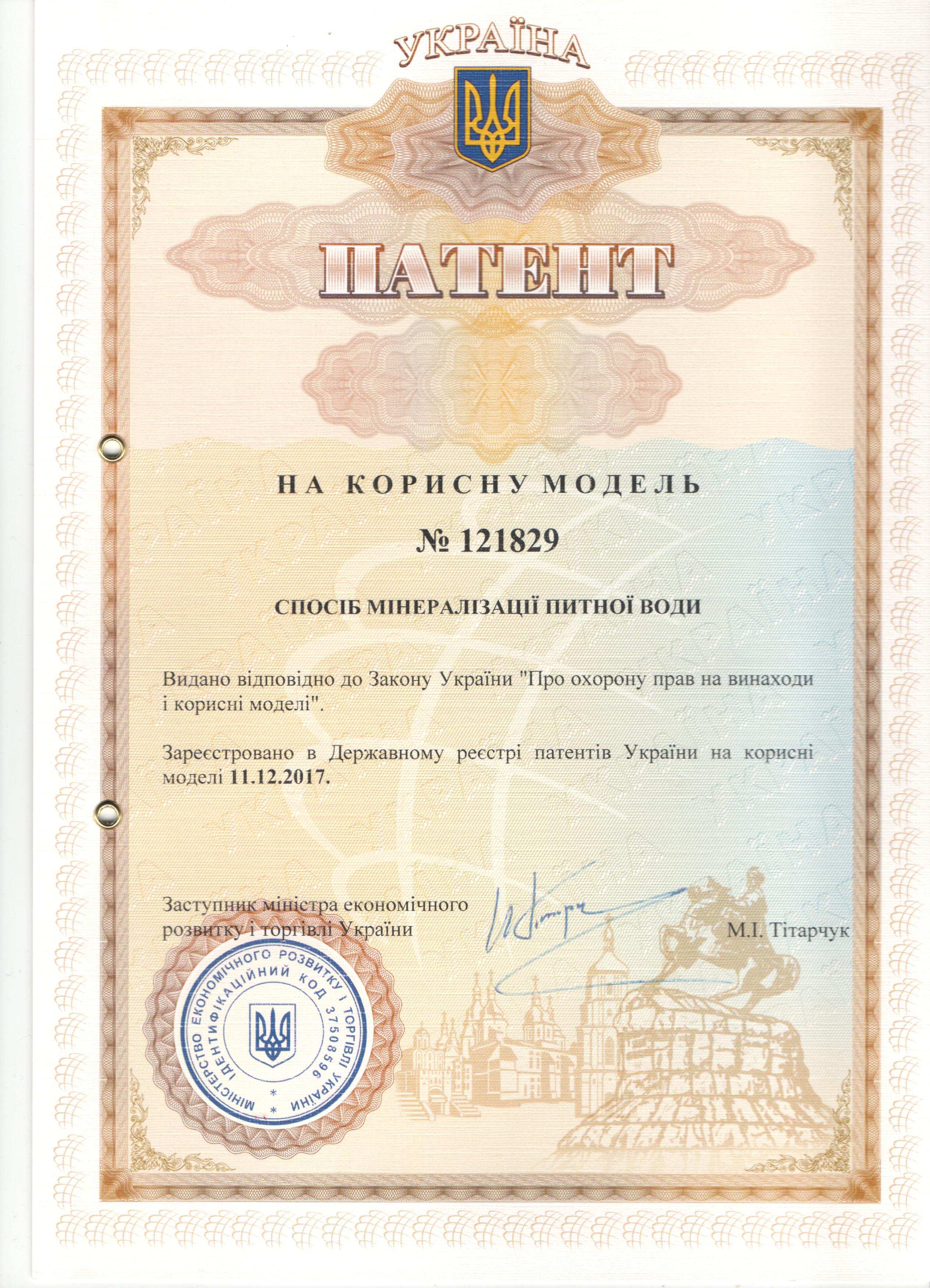 Власна запатентована технологія виготовлення води, що дозволяє отримати